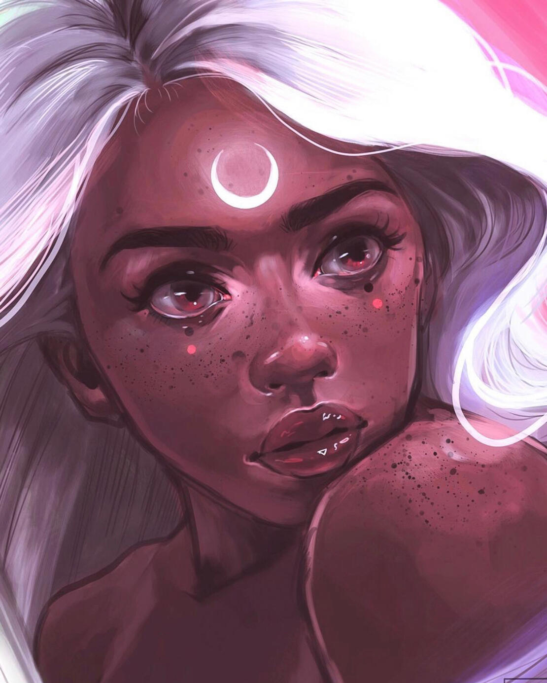 She comes from a lineage of african witches/casters, who were eventually were migrated to an island off the coast of Georgia, due to slave trade, known as the Gullah. In her family there were a generational trait of being sirens, in which one could bring the call of death and bend people to their will. With this l came freedom. Soon enough one of her ancestors who was in the midst of slavery saw how black people were treated and it gave her the mindset of being black as a curse so she used her abilities to somehow get a slave master to fall for her and from that came a mulatto baby. She instilled this so called curse within her family that its women were only to mate with white men in order to live, to have strength and prosper. It was her own crazy way of preserving her family to keep them from struggling and being enslaved. Along with this the lineage often had crazy habits they were taught. Staying out of the sun. Being made to stay in line, poised. Excessively straightening their hair... it went on until there was one. Khalida’s great-great grandmother who just didn’t agree with it. She saw how other black people looked at them. The way her family stuck their nose up at them and she hated it. When she was of age she was arranged to marry to someone, to keep the ill minded tradition, but fell in love with someone of color. He was killed and she was forced to marry. She followed along in what was set, but once the two reached a certain age she used her siren call to make him along with the other major plantations along the island sign over all slaves their freedom, eradicating the injustices among them before killing themselves in what was thought to be a civil war. With that came backlash from her ancestors, who felt that all they lived through and abided by was destroyed and forsaken. Thus bringing a true curse among them.From then future fates were a gamble, existing came with one of three cost, if not all: offsprings were relinquished the choice of being able to pick their nature. sanity wasn’t always guaranteed to be promised as they grew. And true love was not promised to them. Damnation came in some way, set up to either drive themselves crazy, die alone and not reproduce, or possibly be an impending doom to the world if they go were go dark completely. Leaving them to only be power hungry and drunken on chaos, only wishing to obtain both.Khalida herself was engraved with this darkness since birth, causing her to me sent off the the Magick academy at a young age. Here she becomes well versed in magick and is able to have actual practice with chaotic abilities. However, other higher beings sought favor, eventually granting her a new family and position as Mother of Reapers.