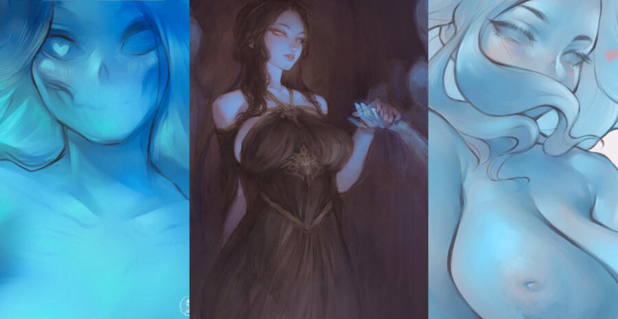 Spectre form; once she became the avatar of limbo Khalida form adapted into that of a specter. Her skin taking on the blue hue, this is what she chooses to be seen as now, unless else is required. When in a physical form her hair is black rather than it’s natural white.